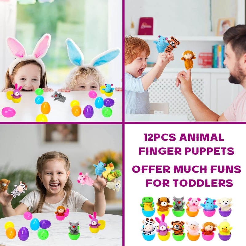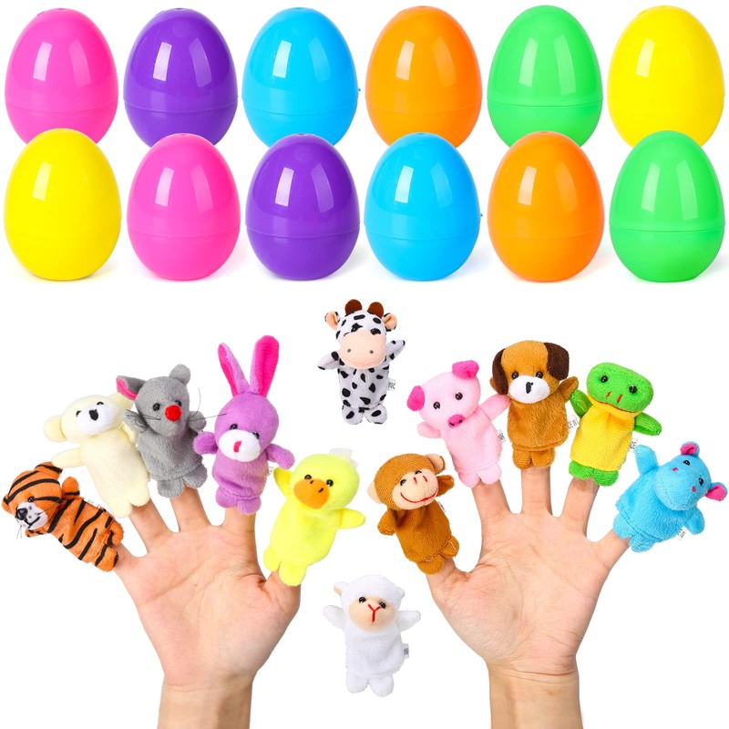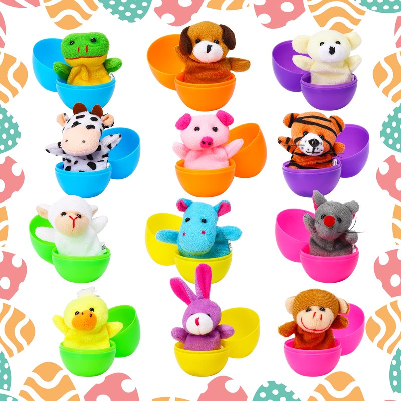 • PACKAGE INCLUDED: 12 Colorful Easter Eggs Prefilled with 12 Different Animal Finger Puppets. Top and Bottom Parts of the Eggs Snap Together to Hide the Surprise Inside of the Egg.