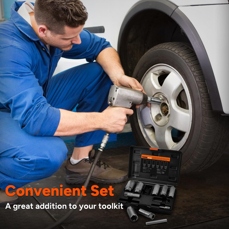 THINKWORK 1/2 Inch Drive Lug Nut Extractor Set, Large Sizes, 10pcs Wheel Lock...