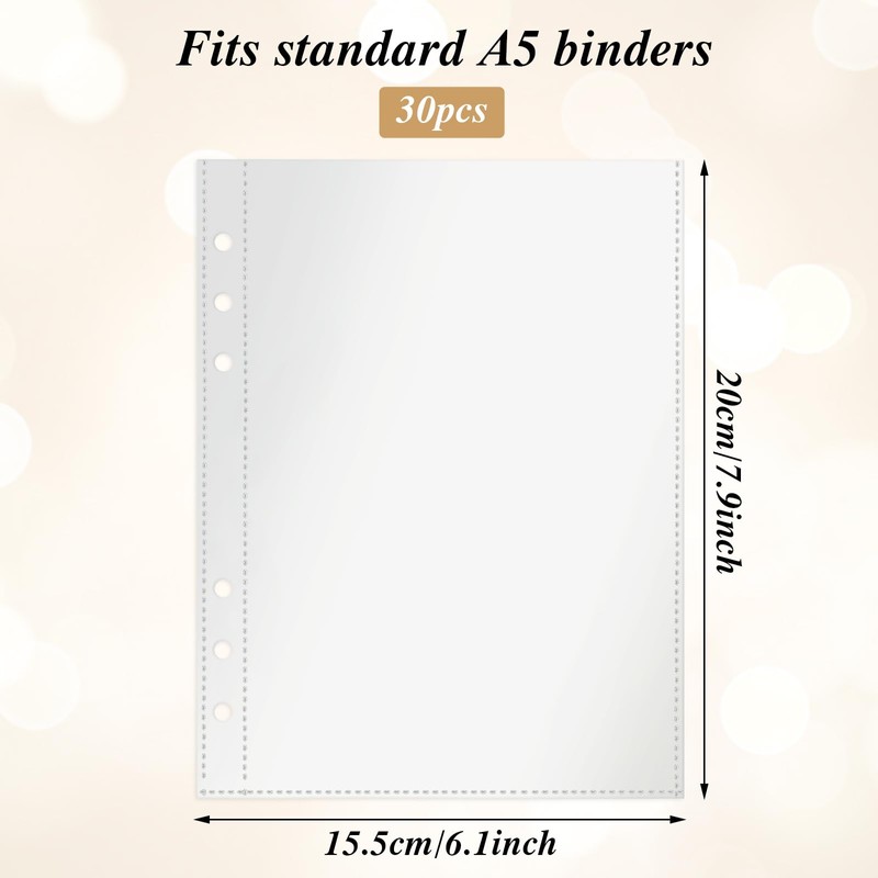 Thinp 30 Pack 6 Ring A5 Binder Sleeves Double-Sided A5 Binder Inserts Photoca...