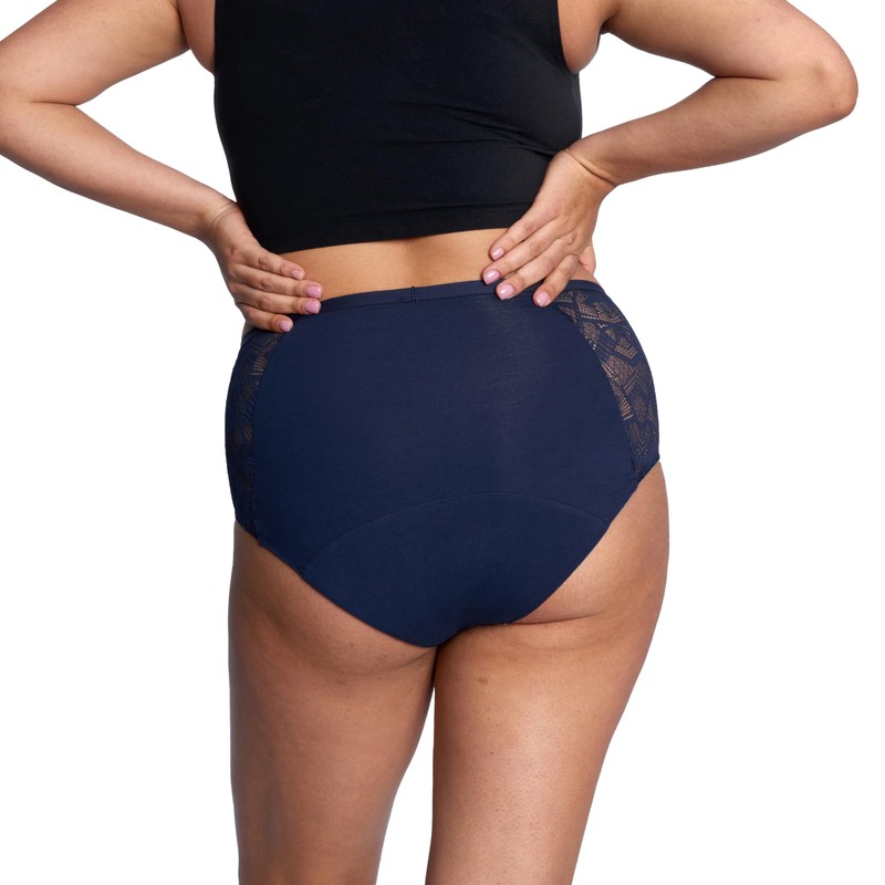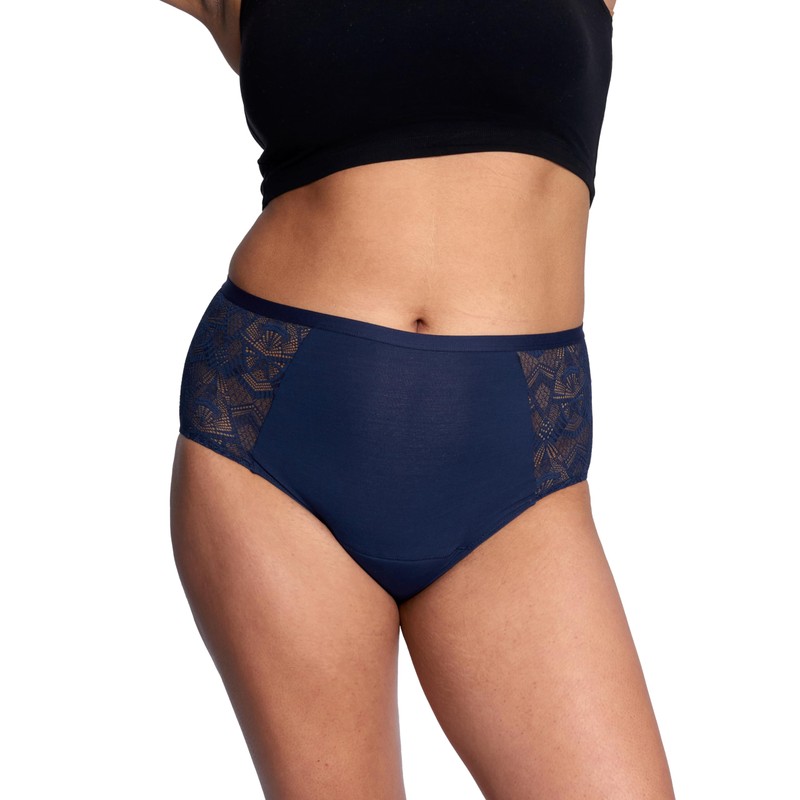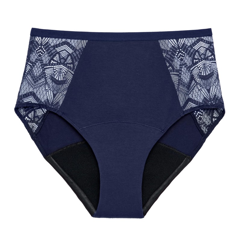 THINX Ultra-Soft Period Underwear, Hi-Waist Leakproof Underwear for Women, Holds Up to 12 Regular Tampons, FSA HSA Approved Period Panties, Reusable, Comfortable, & Flexible, Maritime with Lace, M