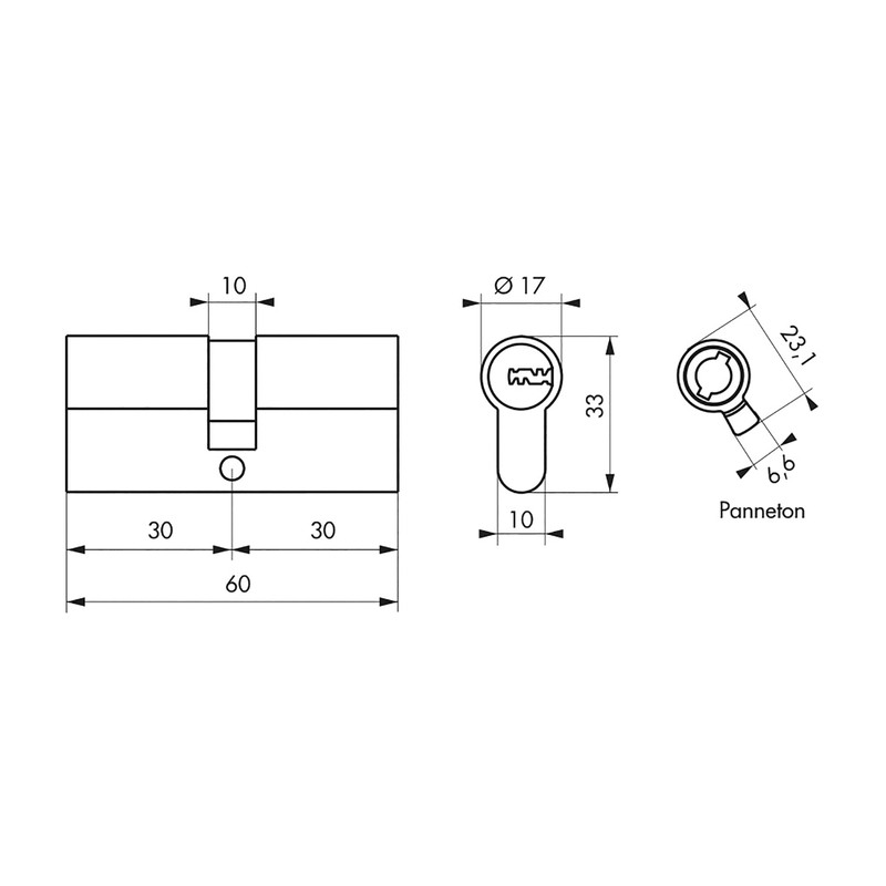 THIRARD - 30 x 30 mm Nickel Plated Cylinder - Transit 1 - Dimensions: 30 x 30 cm - Profile Cylinder - Transit - European Profile Brass 6 Pin Mechanism