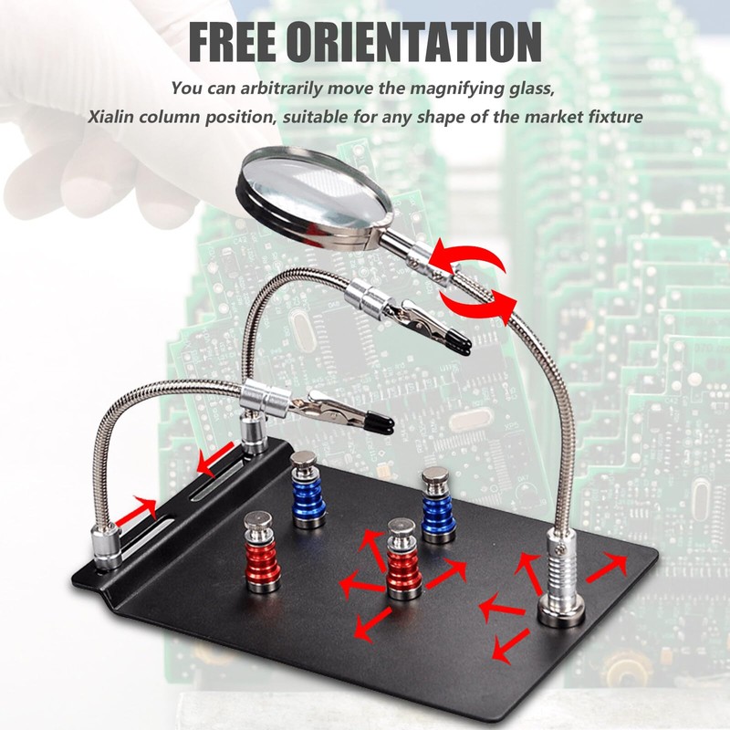- Third hand soldering: flux with magnifying glass, soldering tools, crocodile clips for soldering, assembling and modelling. Magnetic helping hands soldering aids are ideal for hobbies, jewellery making and crafts. Soldering PCB Holder Tool Thanks to the flexible and durable metal tube as well as the soldering clamp and soldering magnifier, you can easily hold the board in the desired position.