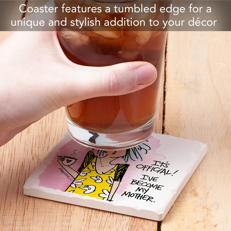Thirstystone Become My Mother Single Tumbled Tile Stone Coaster with Protective Cork Backing Manufactured in The USA 4" Square, Artistic, Easily Wipes Clean