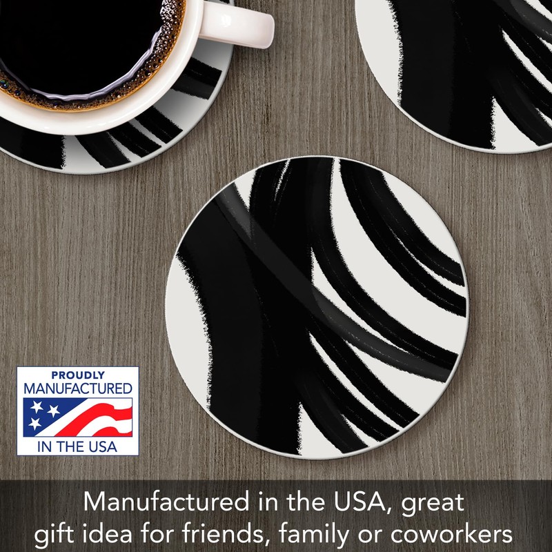 Thirstystone Black Swipes Single Round Absorbent Stone Coaster with Protective Cork Backing Manufactured in The USA 4" Diameter