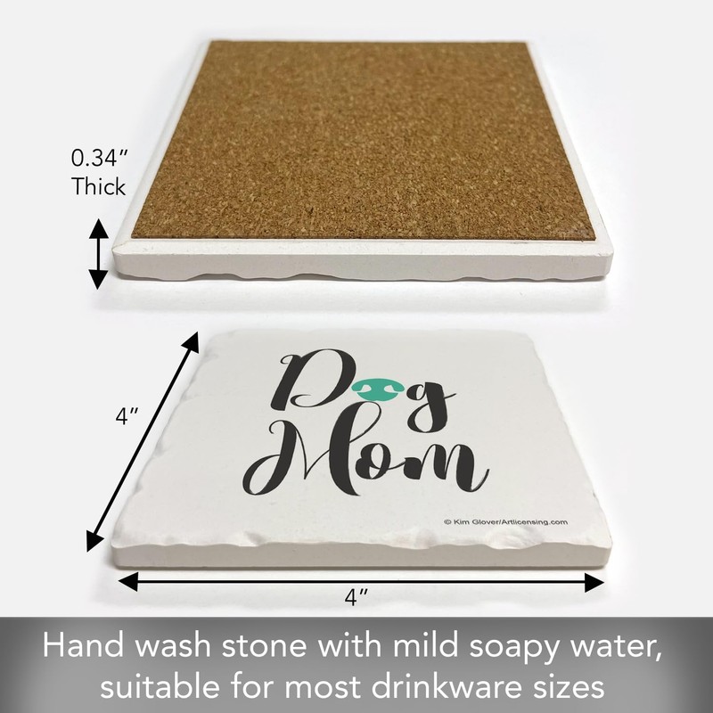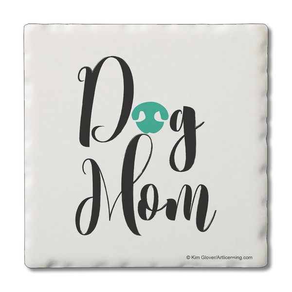 Thirstystone Dog Mom Single Tumbled Tile Stone Coaster with Protective Cork Backing Manufactured in The USA 4" Square, Artistic, Easily Wipes Clean