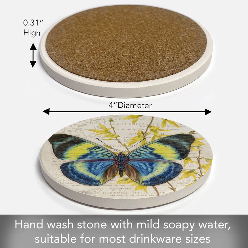 Thirstystone Flasher Butterfly Single Round Absorbent Stone Coaster with Prot...