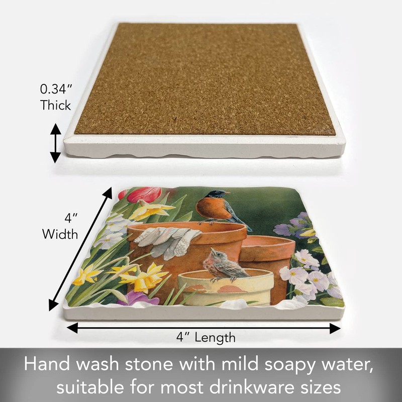 Thirstystone Gardening Friends Single Tumbled Tile Stone Coaster with Protective Cork Backing Manufactured in The USA 4" Square, Artistic, Easily Wipes Clean