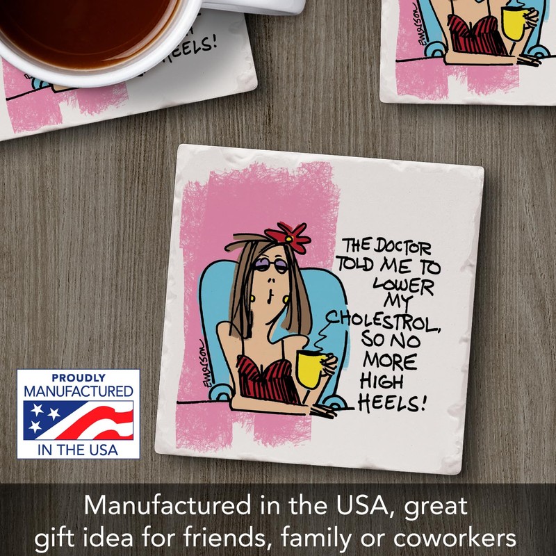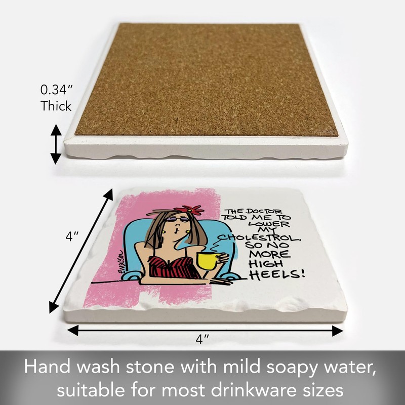 Thirstystone High Heels Single Tumbled Tile Stone Coaster with Protective Cork Backing Manufactured in The USA 4" Square, Artistic, Easily Wipes Clean