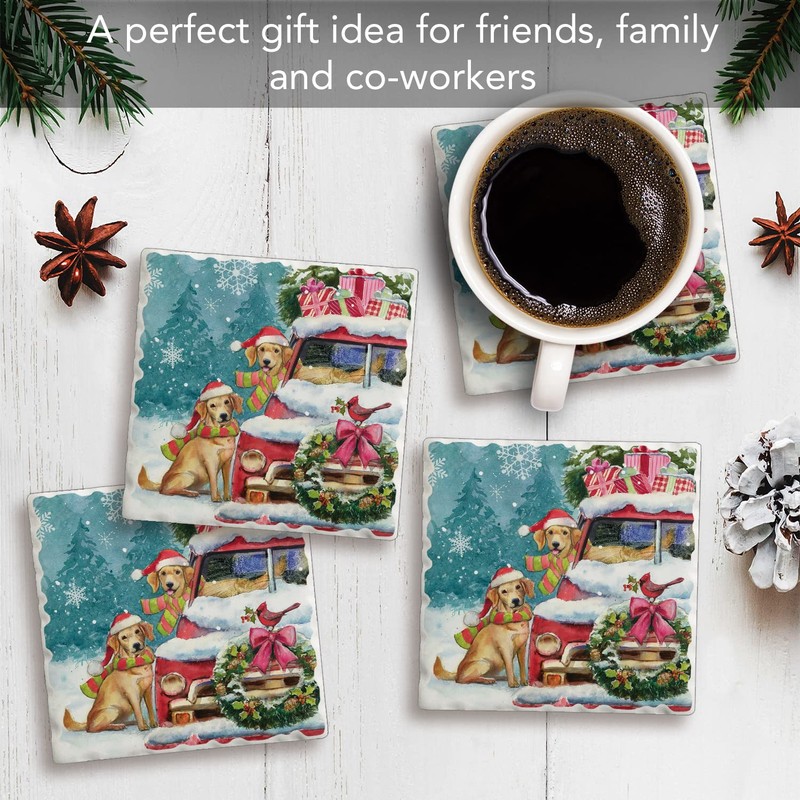 Thirstystone Holiday Buddies 4-Pack Tumbled Tile Coasters with Protective Cork Backing 4" Square Manufactured in The USA Artistic Absorbent Easily Wipes Clean