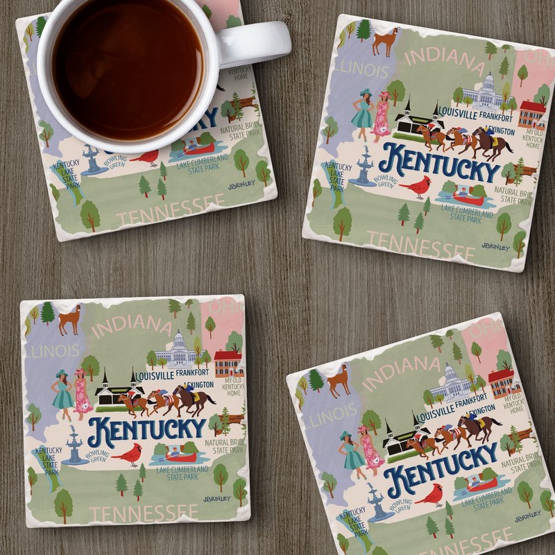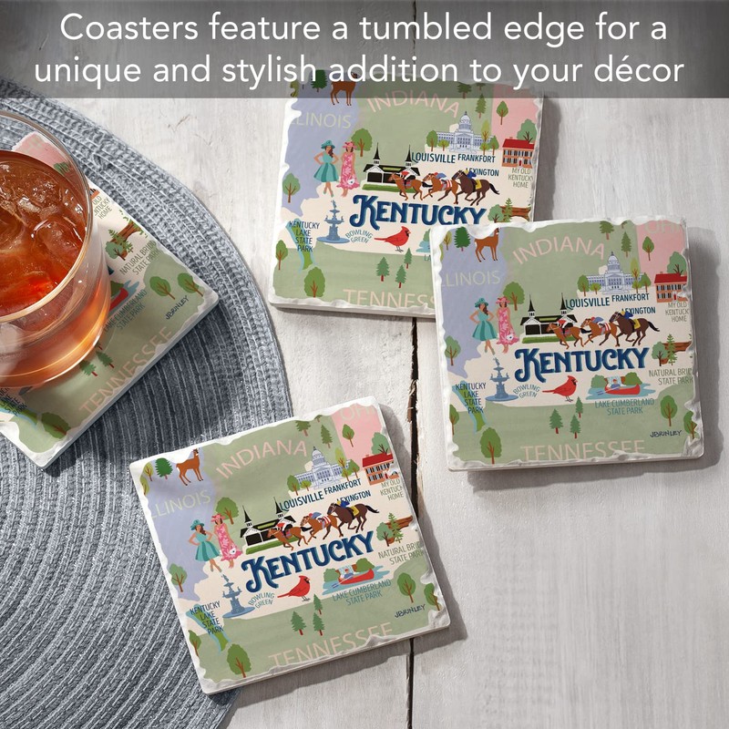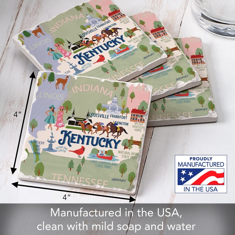 Thirstystone Kentucky Attractions 4 Pack Tumbled Tile Stone Coasters with Protective Cork Backing 4” Square Manufactured in The USA