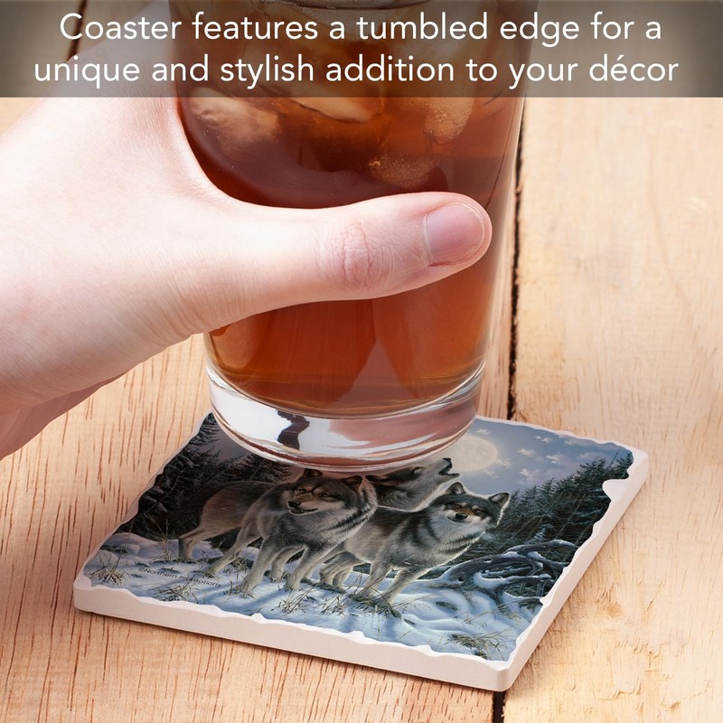 Thirstystone Midnight Wolves Single Tumbled Tile Stone Coaster with Protective Cork Backing Manufactured in The USA 4" Square