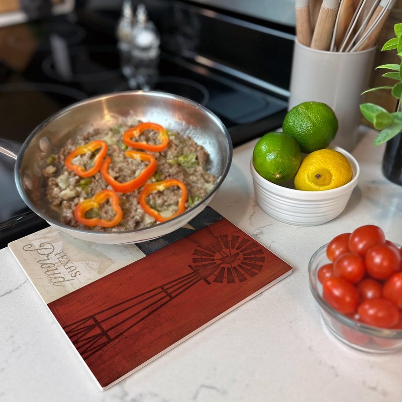 Thirstystone Texas Proud Decorative Heat Tolerant Ceramic Stone Trivet. Trivets work great to protect your surfaces and countertops from heat damage, scratches, and stains. Each Trivet measures 8” Square allowing for different sized pots and pans to be placed on them. Protect your beautiful countertops and tables from damage with these decorative trivets. Artistic design allows the Trivet to remain displayed even when not in use. Makes a wonderful housewarming, birthday, or Mother’s Day gift.