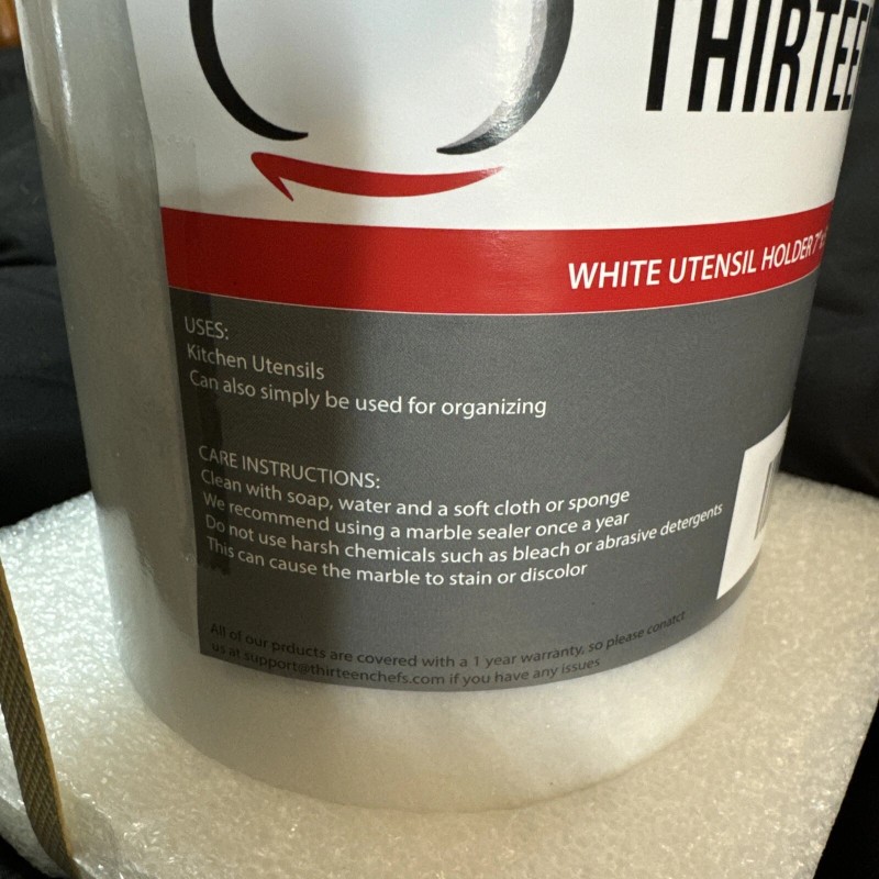 Organize your kitchen tools with this multifunctional utensil holder from Thirteen Chefs. Made of natural white marble, this round-shaped holder measures 5 x 5 x 7 inches and comes with one compartment to store your cooking utensils. You can also use it as a planter or a decorative piece on your kitchen countertop.
