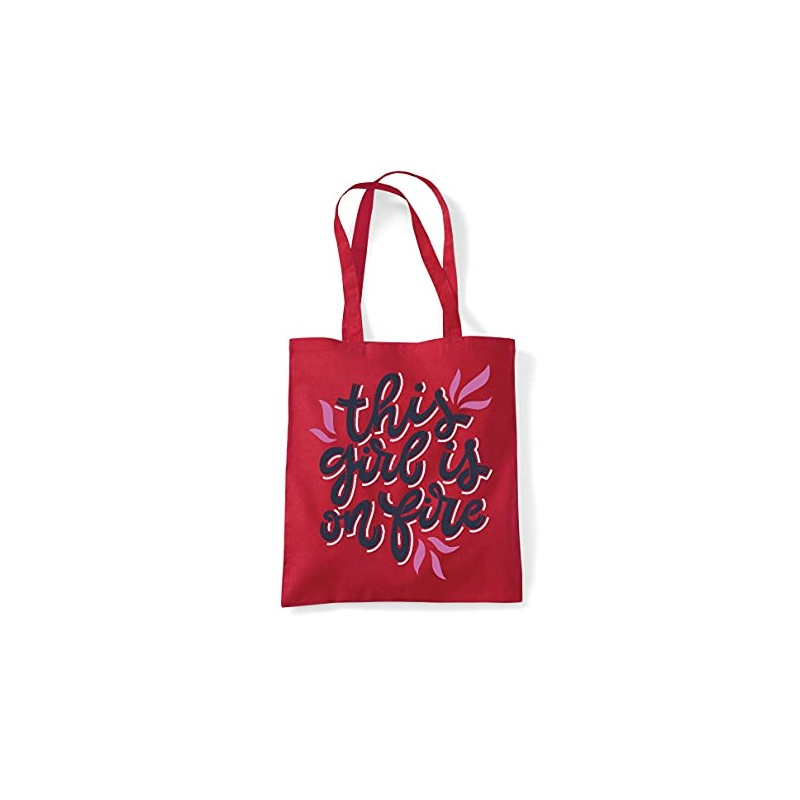 This girl is on fire statement (girl power set) tote shopping bag - Red