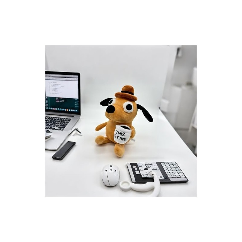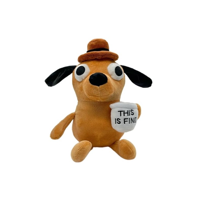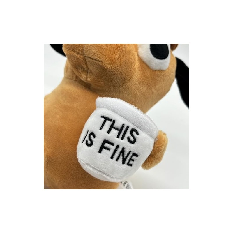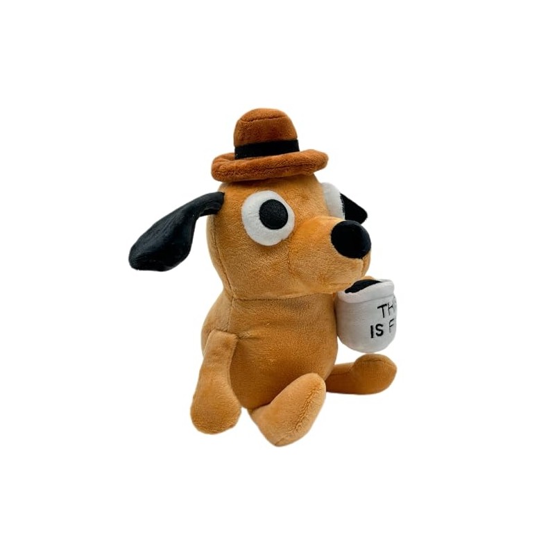 This is Fine Dog Plush, 11" inches Sized, Funny Coffee Drinking Dog Stuffed Animal Action Figures Soft Dolls Meme Plushies, Xmas Birthday Party Graduation Humor Gag Hilarious Ideal Gifts