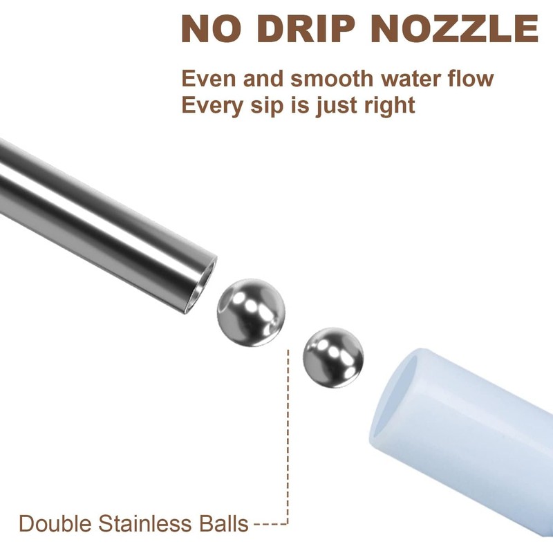 - 【No Drip Design】This bottle design with stainless steel ball, only pet touches the ball can it drink the water, don't worry about water leakage. Note: To prevent water leakage, please do not fill up the water bottle. No electricity is needed, environmentally friendly and silent, effectively preventing water leakage and overflow. Compared with large water bowls, the water is not easily polluted and it will not cause mouth inflammation because their chin is exposed to water for a long time.