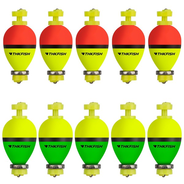 THKFISH Fishing Bobbers Floats,10 Packs Weighted Bobbers, Foam Oval Slip Bobbers for Fishing, Three Colours Crappie Bobbers, for Fishing Bluegill Crappie Panfish Bass Trout, 1in 1.5in 2in (1in)