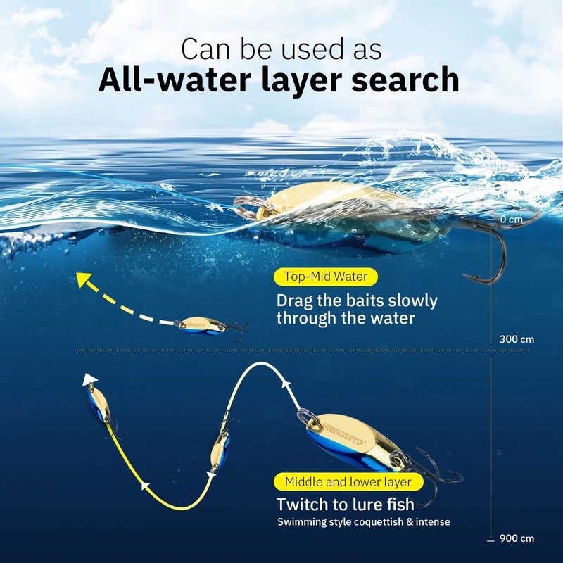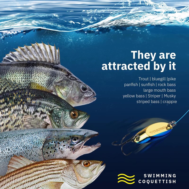 - LIFE-LIKE SWIMMING ACTION LURES: Fishing Spoons produce a wild and erratic action. With a special balance that produces wild action without line twist. Twitching and jerking the spoon as you retrieve it as this greatly improves the action and entices fish to strike. Slow Retrieve, wide wobble of the spoon mesmerizes trout, walleye and pike want to give chase, bump it. Fast retrieve, action is much more erratic, pumping out serious flash, movement, and vibration.