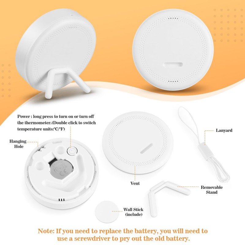 - BATTERY OPERATED & TIME SETTING Each thermometer comes with 1 CR2032 button battery, each battery lasts 8-12 months. Note: If you need to replace the battery, you need to pry out the old battery with a screwdriver.