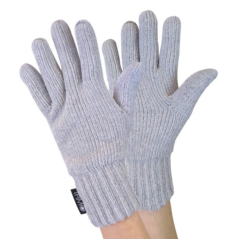 THMO Ladies Thinsulate Hat and Gloves Set Soft Chenille Ribbed Beanie Hat & Gloves for Women (One Size, Grey)
