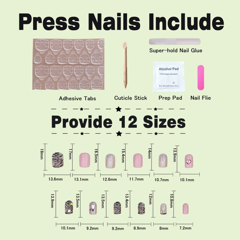 - MULTIPLE SIZE OPTIONS We offer multiple size options for different nail sizes. This ensures that everyone finds their perfect size and makes your manicure even more flattering and comfortable. Suitable for daily use: these short press on nails are suitable for both daily work and dating, party or formal events. Whether in the office or at a dinner party, you can flaunt the beauty of your flawless fingertips.