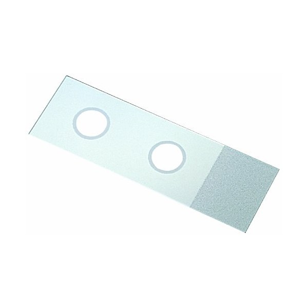 The Thomas fluorescent antibody microscope slide measures 1 x 3\" and has two etched rings, each with a known diameter for counting. It has a frosted glass end on one side to accommodate labeling with a pencil or marking pen. The package contains 144 slides. This glass slide is used for performing indirect fluorescent antibody tests.