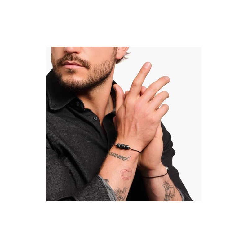 THOMAS SABO 2 Karma Secret Bracelet with Black Obsidian Beads Matte 925 Sterling Silver Nylon A2107-172-11