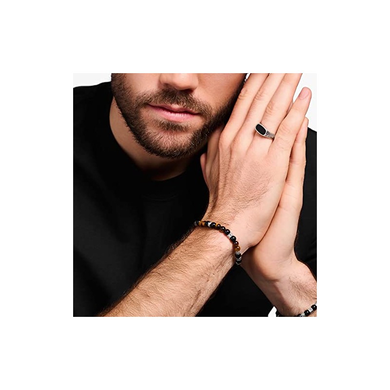 THOMAS SABO A2087-507-7 Unisex Bracelet Tiger's Eye Elements 925 Sterling Silver Blackened, Sterling Silver, No Gemstone