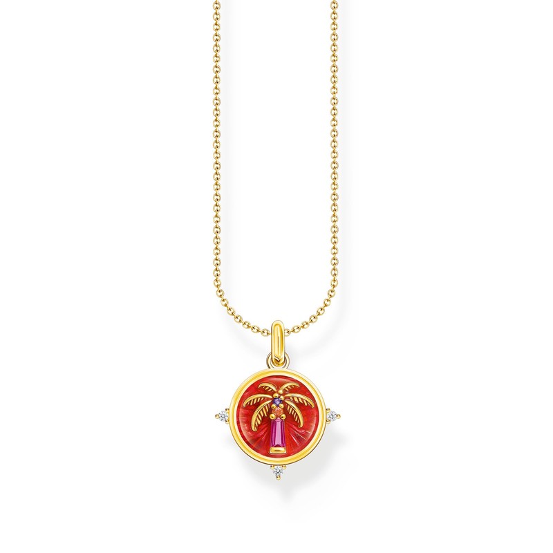 THOMAS SABO KE2204-471-7 Women's Necklace with Palm Tree Pendant and Colourful Stones Gold-Plated 925 Sterling Silver 750 Yellow Gold Plated Cold Enamel, Sterling Silver, No Gemstone