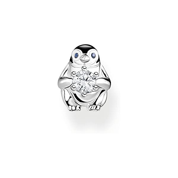 THOMAS SABO Single Penguin Stud Earrings with White Stone, Sterling Silver, No Gemstone