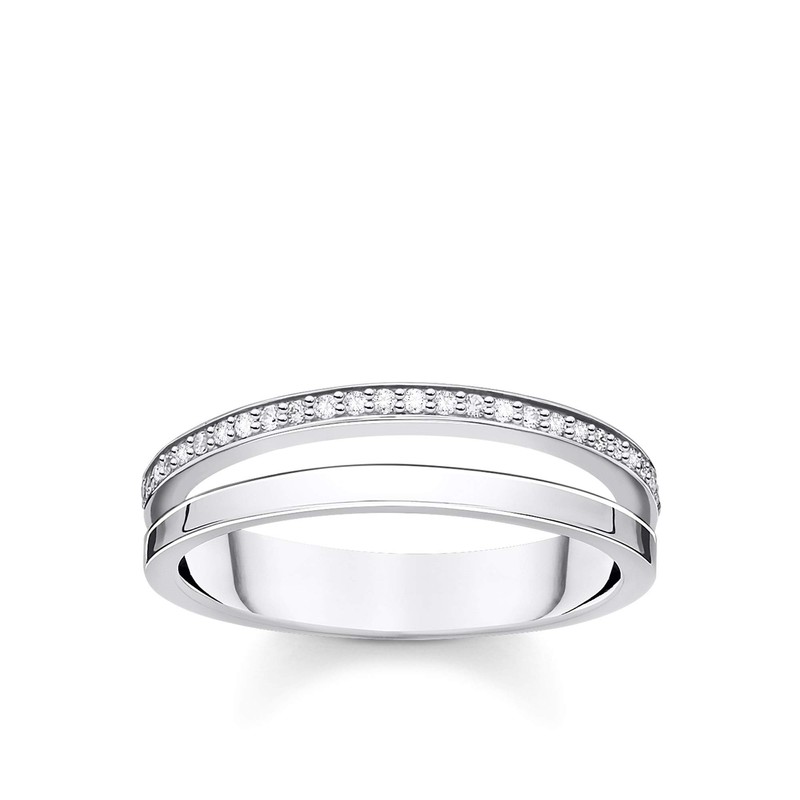 Thomas Sabo White 925 Sterling Silver Double Stone Ring TR2316-051-14, Silver, Cubic Zirconia
