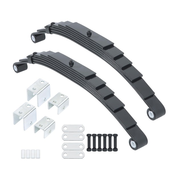 - Product includes 2 x 3500lbs-6 leaf springs (bushings), 2 x center hangers, 2 x front and rear hangers, 4 x shackle straps, 6 x shackle bolts and lock nuts, 4 x bushings