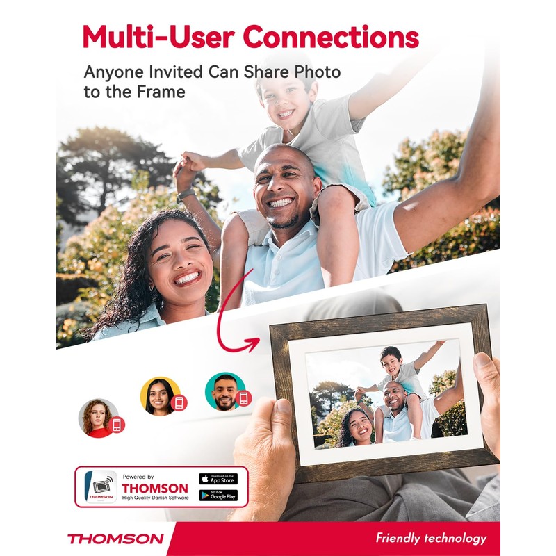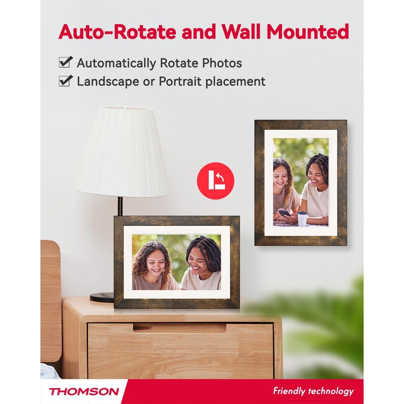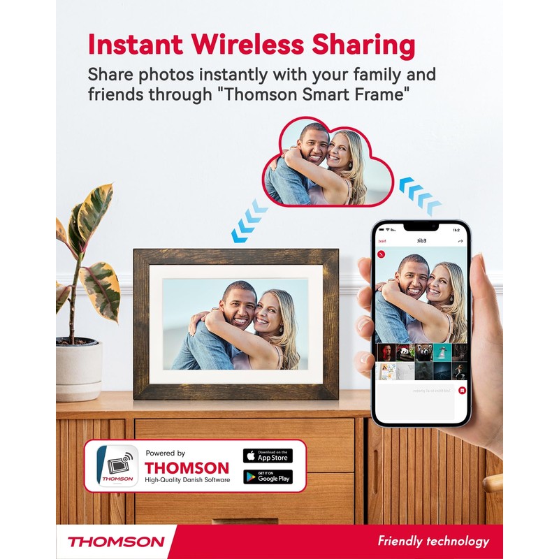 • WiFi digital picture frame: After you connect your digital photo frame to WiFi, it is very easy and quick to log in and access your "Thomson Smart Frame" account. You can share your current joy and exciting moments with your family and friends at any time via your digital picture frame.