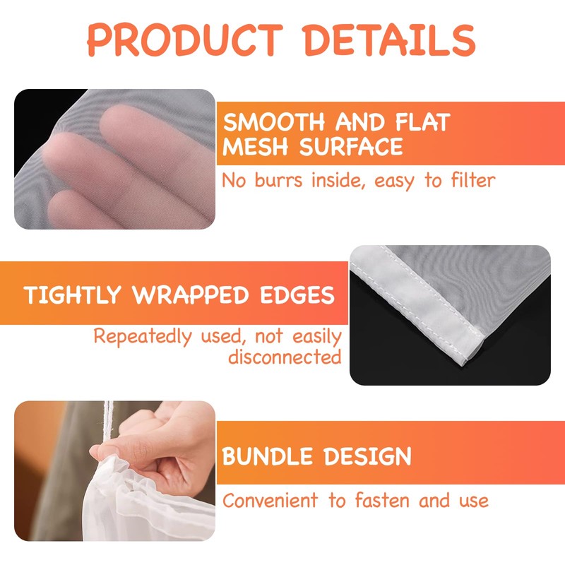 • Reusable and durable: the filter cloth is made of high-quality nylon material and can be easily reused after washing with water. It is robust and durable and can be used many times