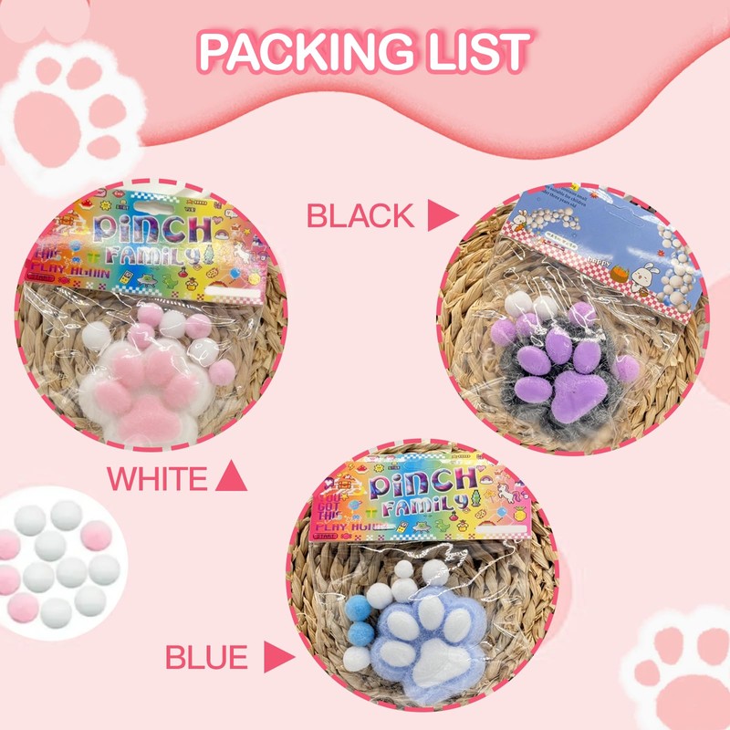 You will receive 3 cat claw squeeze toys, 1 white, 1 blue and 1 black, each with small balls, made of flexible plastic, perfect for squeezing and squeezing, giving a satisfactory tactile experience that can focus attention and relieve anxiety