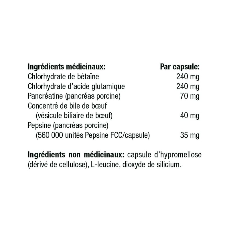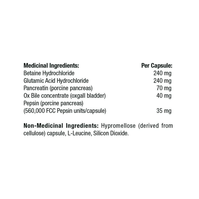 - Comprehensive Formula: A blend of hydrochloric acid, pepsin, pancreatin, and ox bile