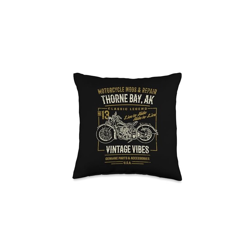 Thorne Bay Alaska USA Retro Motorcycle Distressed Design Throw Pillow