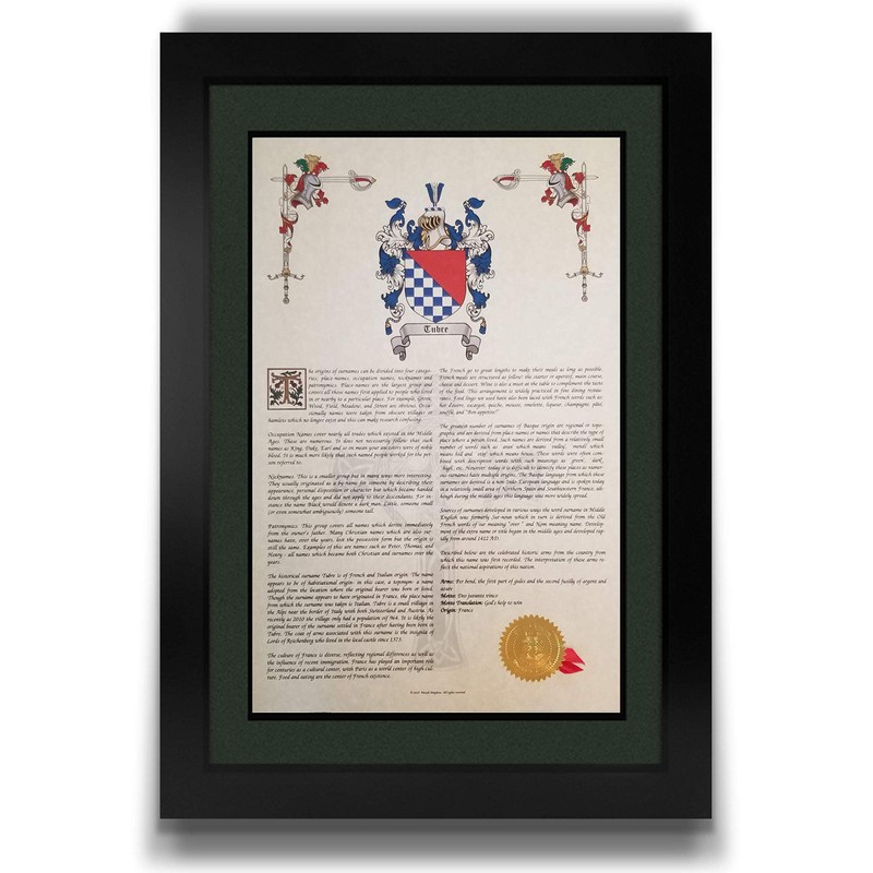 The images used are EXAMPLES of what the product(s) will look like. This COLLECTIBLE product is a 11x17 print. The Surname for this product is the first word(s) in the products title and the country of origin is indicated with the last three words in the product title. This print uses the earliest coat of arms associated with a bearer of the surname (last name) and the time tested surname etymology, a history of the name and its origins throughout the ages. If available, it includes the ancient origin of the name, spelling variations, early movement of the surname during the Middle Ages, noteworthy bearers from around 1400AD or earlier up to current day, and first settlers in North America. There may be different variations of Coat of Arms for each surname and the one we use is the oldest registered Coat of Arms verified in history.