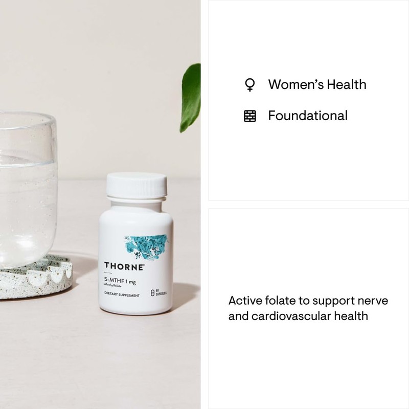 THORNE 5-MTHF - Methylfolate (Active B9 Folate) Supplement - Supports Cardiovascular Health, Fetal Development, Nerve Health, Methylation, and Homocysteine Levels* - 60 Capsules - 5-MTHF 1mg