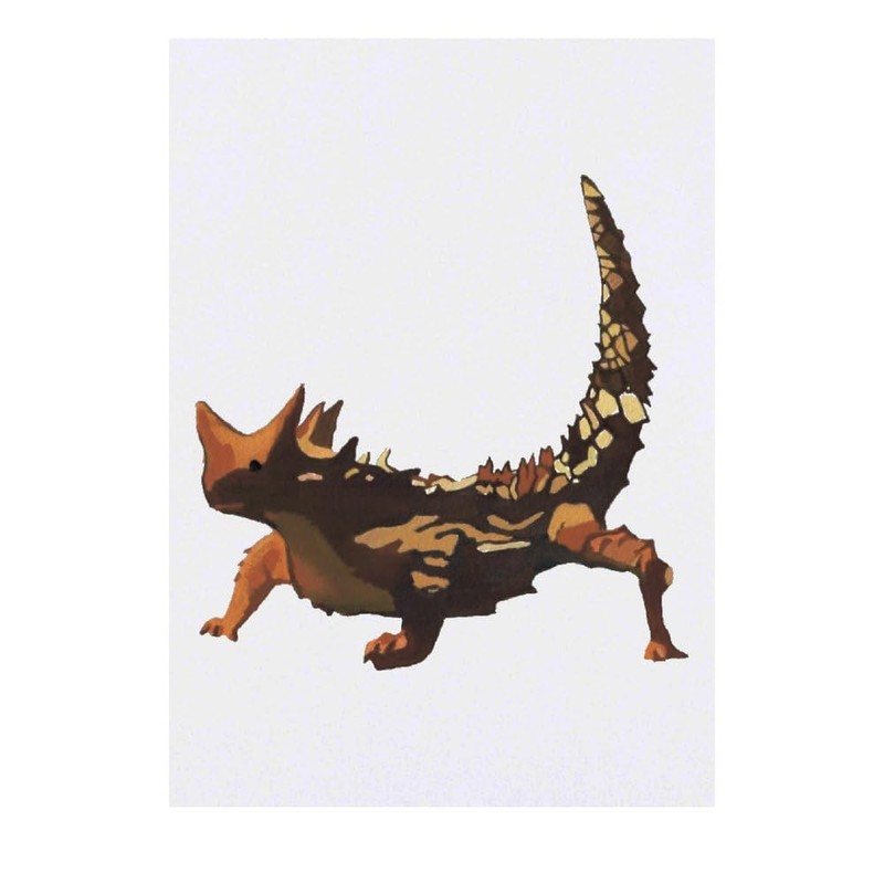 'You will love this rendition of a Thorny Devil done in Gouache. The Thorny Devil is a creature which roams the arid regions of Central & Western Australia and lives on a diet of just ants. When threatened, it curls itself up in a small ball & camouflages itself. It's spiny exterior makes himself unpleasant to eat.'