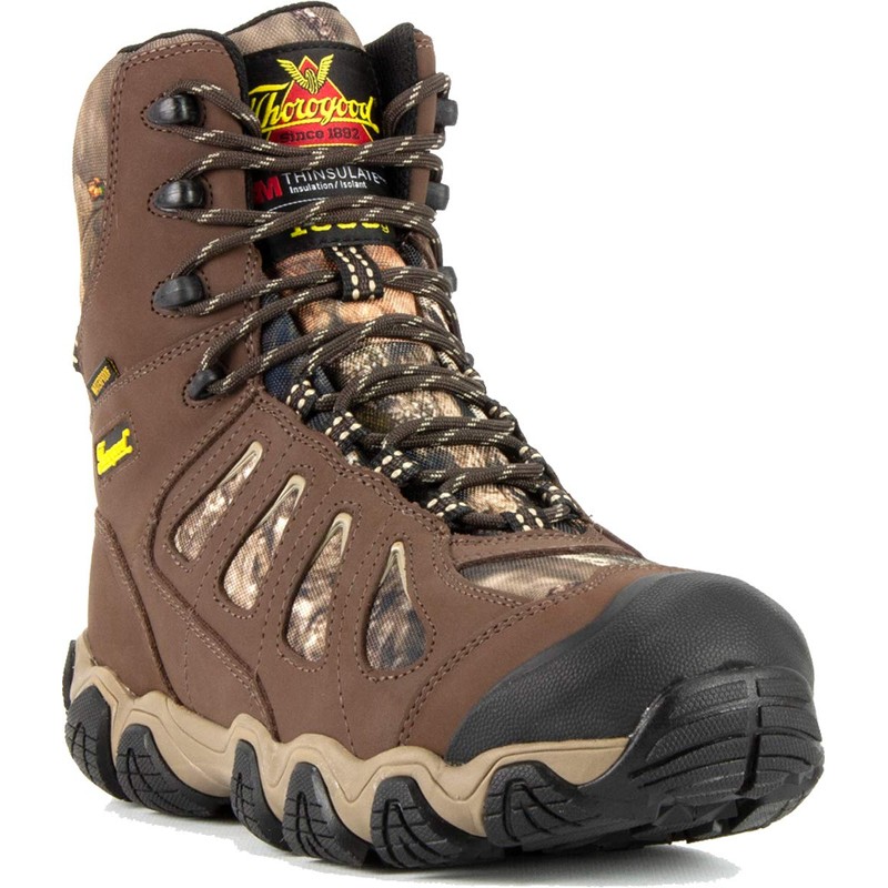 Thorogood Crosstrex 8” Insulated Waterproof Hiking Boots for Men - Premium Breathable Leather and Mesh with Mossy Oak Break-Up Country Camo and Traction Outsole, Brown/Mossy Oak - 14 M US
