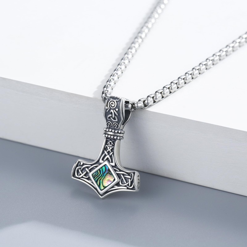- 【Thor Hammer Necklace Material】Men thor's hammer necklace is made of 100% 925 sterling silver and decorated with abalone shell, which is nickel-free, lead-free and cadmium-free, hypoallergenic. It is safe for your skin!