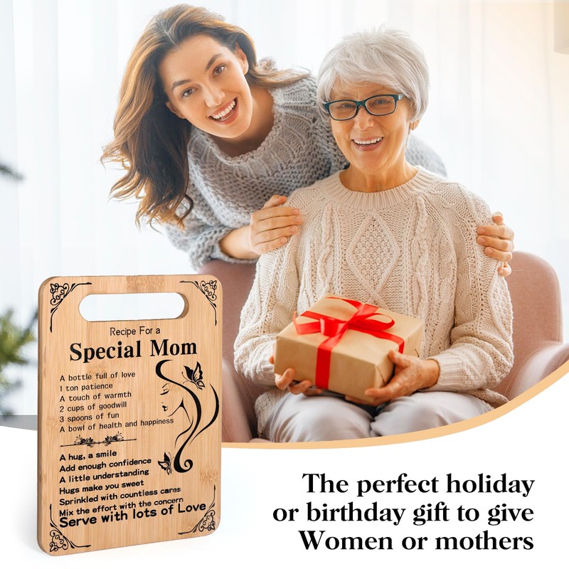 - Perfect Gift for Mom: Surprise your mom with this elegant bamboo cutting board, the ultimate Mother’s Day or birthday gift. birthday gifts for women,any Birthday, Christmas, or Christening.Practical, stylish, and eco-friendly, it’s a thoughtful way to show your love while upgrading her kitchen essentials.