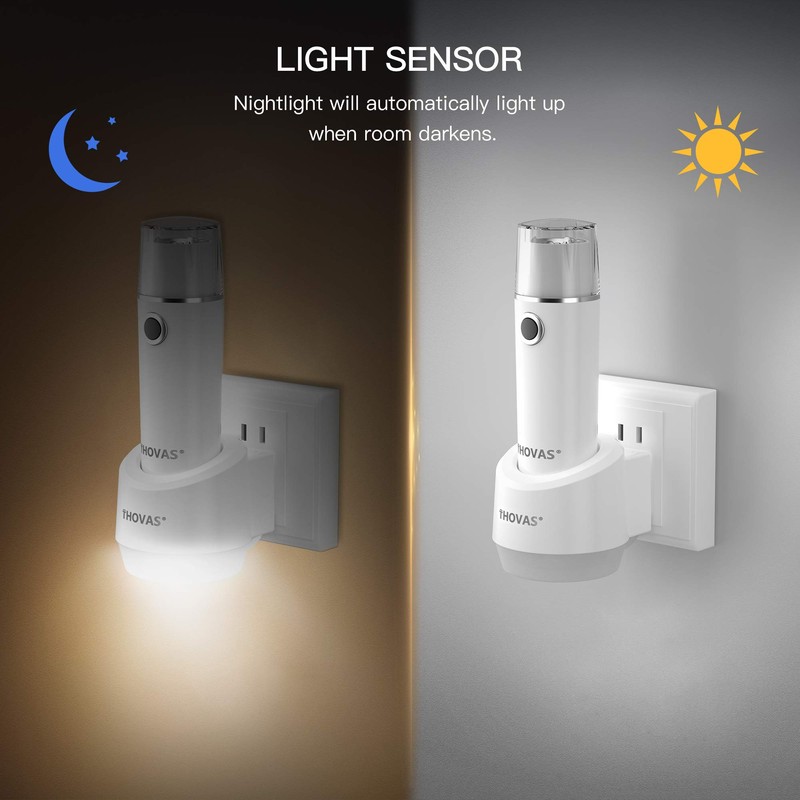 - 【SMART NIGHT LIGHT】: This plug-in night light base contains 3 lighting modes : ON, OFF and AUTO. Most people like to set AUTO mode, the night light is with light sensor will automatically turns on when room darkens.