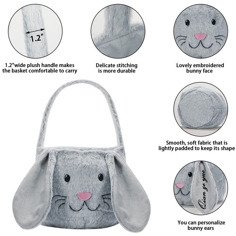 - Unique DesignSoft and comfortable rabbit fluffy ears made of high quality materials,An easter bucket that can hold a lot of snacks.the bunny easter bucket fluffy ears can be personalized monogrammed by yourselves.but the monogram service is not available
