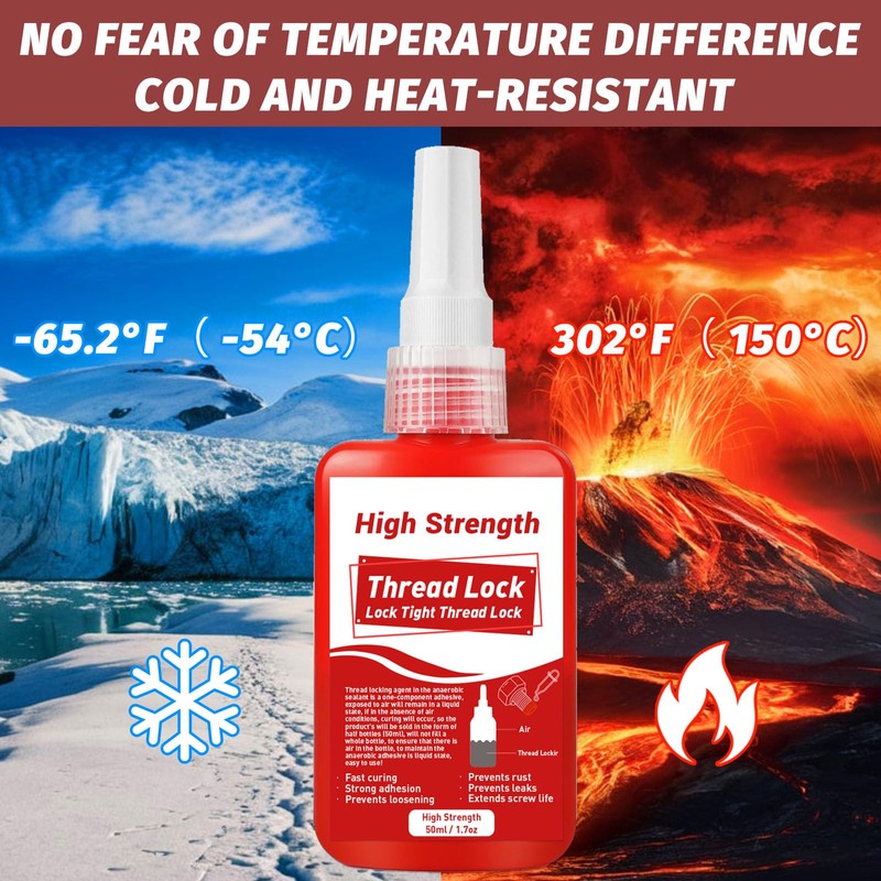 - Used Widely - You will receive high thread Lock 2 *50ml . The threadlock is suitable for all threaded metal connections such as automotive electronics, home appliances, kitchen and bathroom appliances, furniture, etc. Your equipment can be repaired easily, preventing expensive and potentially harmful risks from loose nuts