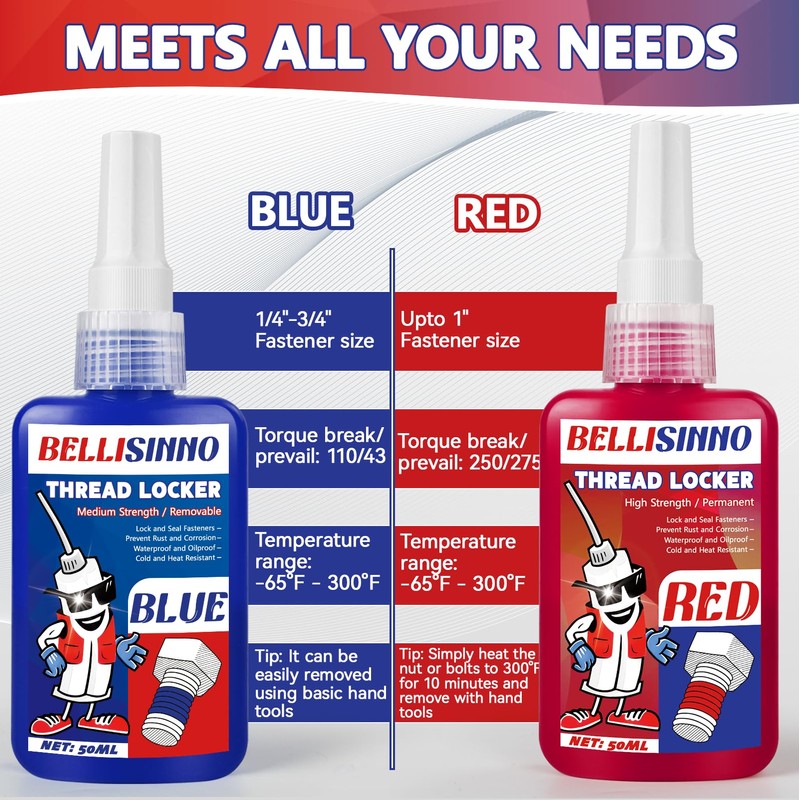 Thread Lock Blue and Red, Medium and Strong Strength Threadlocker, Thread Loc...