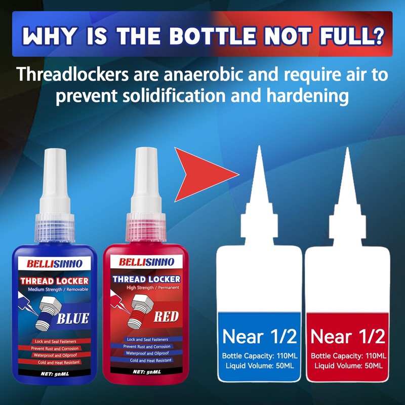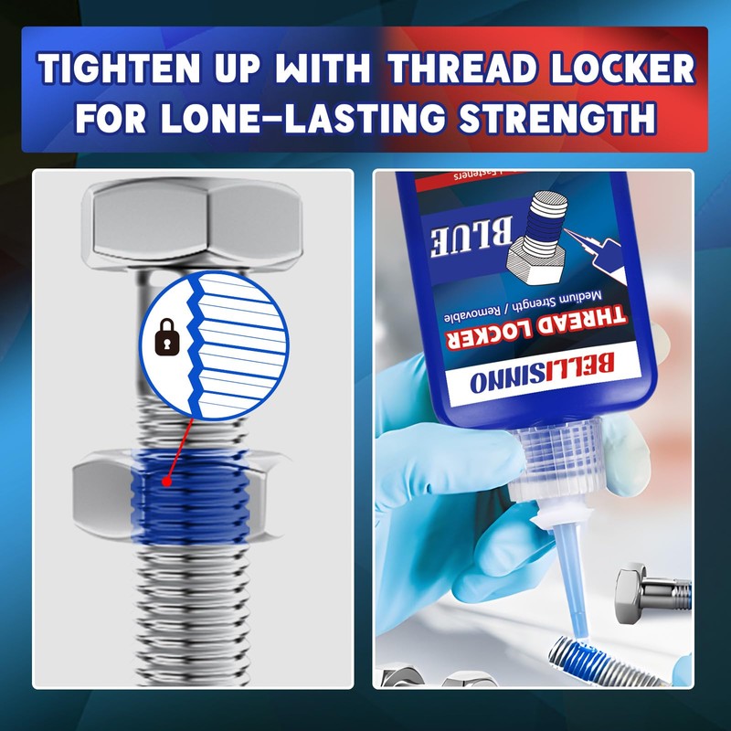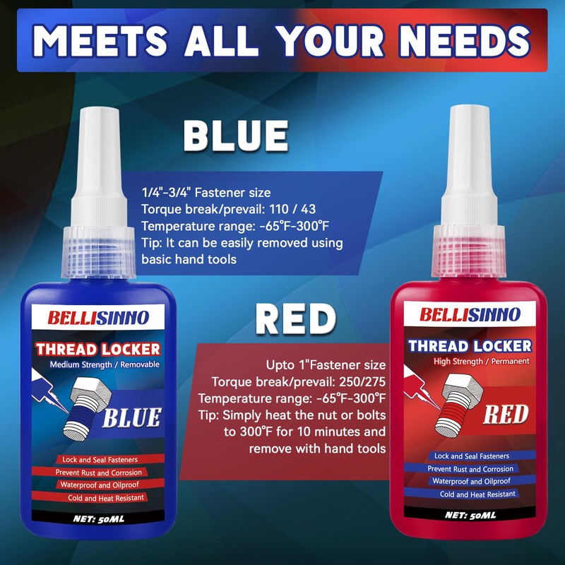 Thread Locker Blue and Red, Medium and Strong Strength Thread Lock, Threadlocker for Nuts, Bolts, Fasteners and Metals, Anaerobic Curing Screw Glue to Prevent Loosening and Corrosion (Blue and Red)