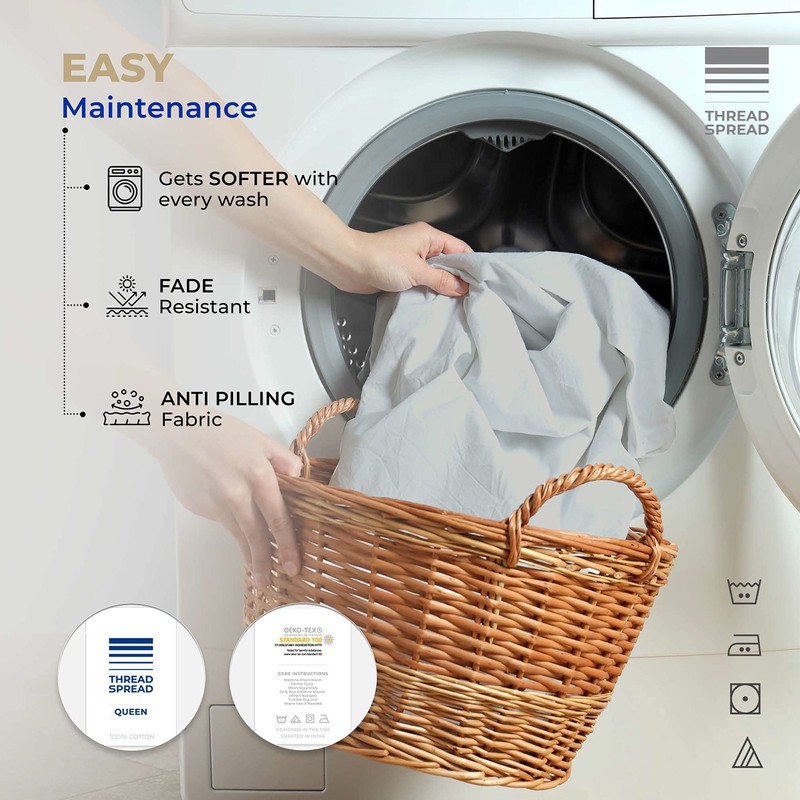 • Why Buy Thread Spread 100% Cotton and Not Microfiber?: Our 400 Thread Count fitted sheets are made from mercerized cotton for increased luster and brighter, deeper colors that don’t fade and pill even after multiple washes. For healthy sleep, opt for our 100% cotton full fitted sheet that is natural in formulation, cool to the touch, and breathable to create a heavenly sleeping experience. Microfiber is cheap and used mainly for cleaning. It attracts dust quickly and is harmful to your skin