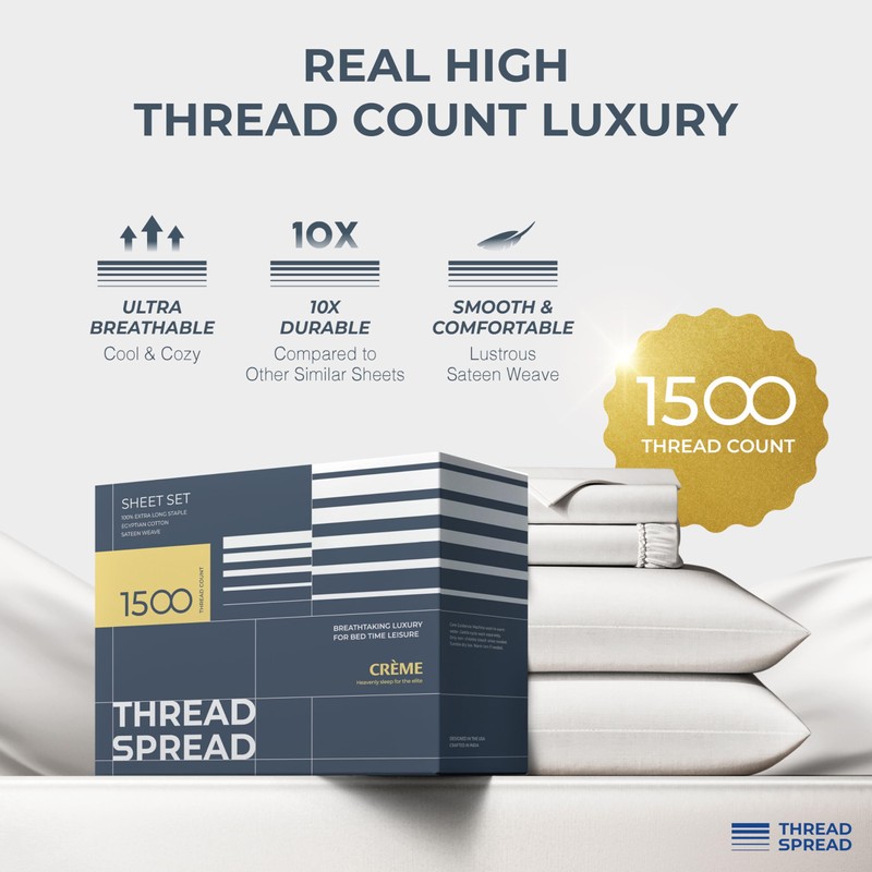 - Experience Unparalleled Opulence with Thread Spread's 1500 Thread Count Egyptian Cotton Sheet Set: Discover the epitome of luxury with our meticulously crafted 1500 Thread Count Egyptian Cotton Sheets Queen Size, elevating your sleep experience to a realm of unmatched comfort and sophistication. Sourced from the finest extra-long staple cotton, renowned for its superior softness and exquisite quality, these Egyptian cotton queen bed sheets redefine indulgence